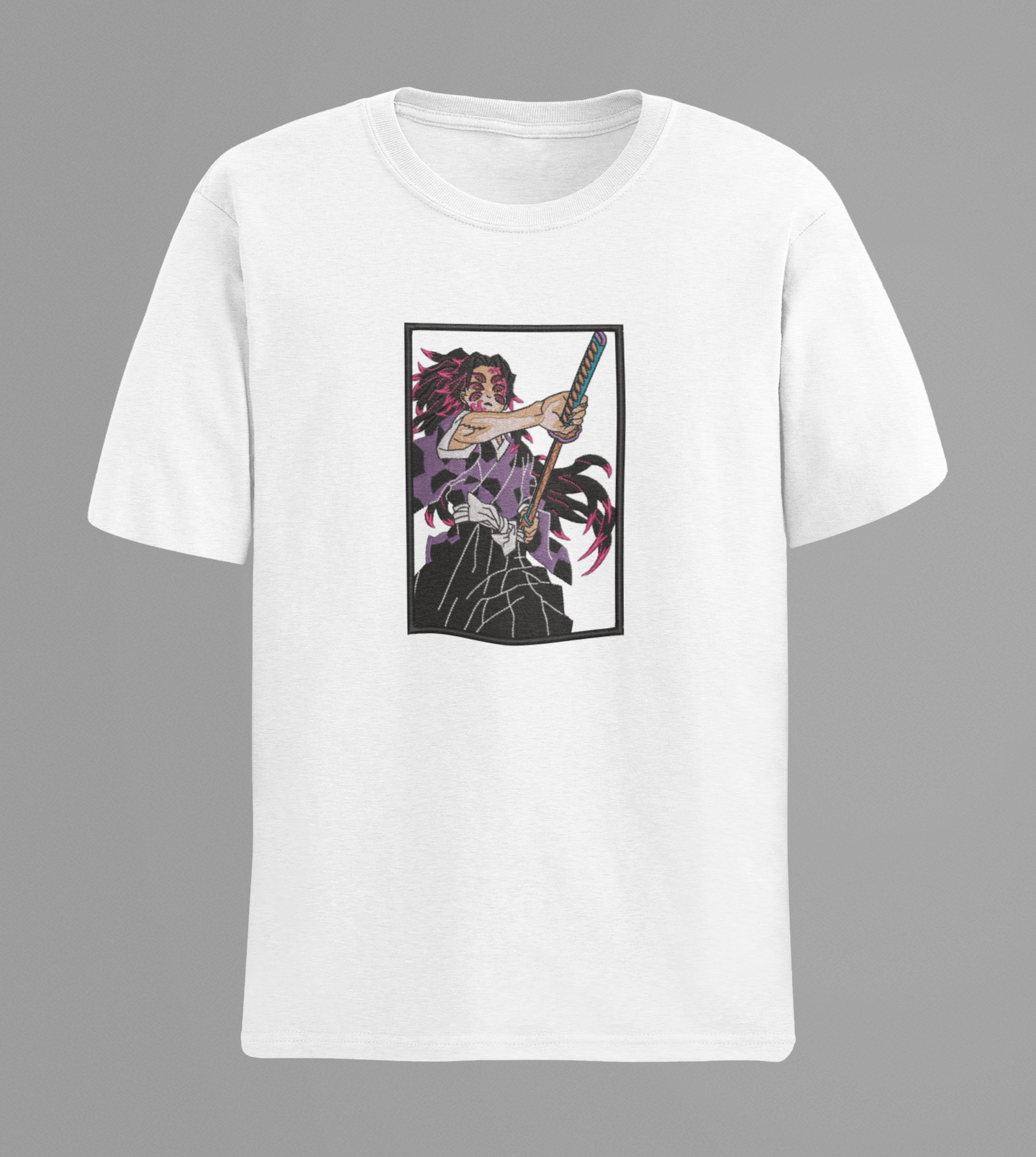 Step into the dark elegance of anime streetwear with this premium embroidered Kokushibo T-shirt, inspired by the formidable Upper Moon demon. Crafted from high-quality, breathable fabric, this T-shirt delivers lasting comfort while making a striking visual statement. The finely detailed embroidery showcases Kokushibo’s menacing presence, intricate facial details, and signature multi-eyed intensity, executed with precision stitching for a bold, textured finish.